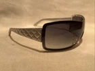 This item up for sale is a pair of rare hard to find collectible authentic Chanel Sunglasses 4155-Q Silver Quilted Leather Made In Italy Woman's Wrap style frame. Sunglasses are in good use wearable condition frames are in good overall clean condition 7.5-8 out of 10 good used wearable shape. Frames have some normal usage and storage wear to them. Lens shield is in good used wearable condition some small light usage and storage wear and small light marks but still overall good clean vision when wearing the sunglasses. Please see pictures close item lose item is sold as is thanks for looking no returns don’t miss out on this sale