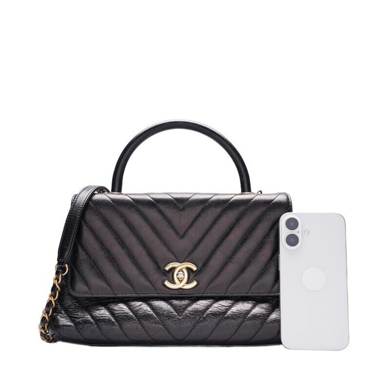 Absolutely stunning! The Chanel Chevron Coco Handle tote is a timeless piece with a luxurious feel. Despite some signs of wear, the black calf leather and gold chain still make it a head-turner. The medium size is perfect for everyday use, and the chevron pattern adds a chic touch. Even with minor scratches and discoloration, it carries that classic Chanel elegance. Love how versatile it is—dress it up or down effortlessly. A must-have for any Chanel lover!
