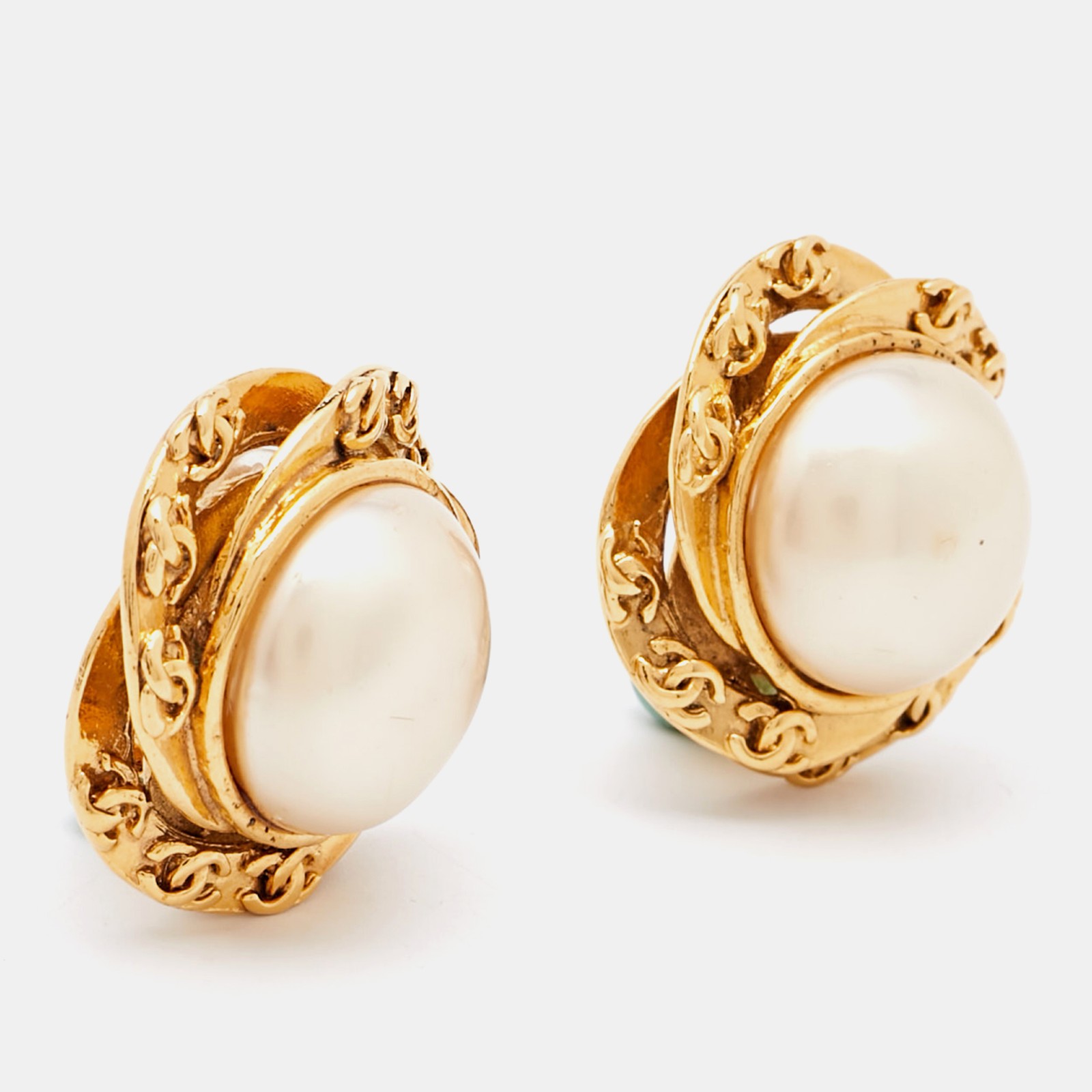 Classic Chanel with a touch of vintage appeal, these clip on earrings showcase the iconic CC logo and lustrous faux pearls. A luxe way to add a little Parisian elegance to your look.Certified by The Luxury Closet - This item has gone through a detailed authentication process overseen by our experts. We offer a lifetime guarantee of authenticity on all our items. Import duties, taxes and charges are not included in the item price. These charges are the buyers responsibility. Please check with your country’s customs office to determine what these additional cost will be prior to buying. Our eBay Store About Us Contact Us Add to Favorite Sellers Chanel CC Faux Pearl Gold Tone Clip On Earrings $471.9 Classic Chanel with a touch of vintage appeal, these clip on earrings showcase the iconic CC logo and lustrous faux pearls. A luxe way to add a little Parisian elegance to your look. Product Details Brand Color Gold Dimensions Width: 2.9 cm, Length: 2.9 cm Material Faux Pearl Size Outsole Width Outsole Length Heel Height Includes Original Box Certified by The Luxury Closet This item has gone through a detailed authentication process overseen by our experts. We offer a lifetime guarantee of authenticity on all our items. How We Check The in-house team of experts at The Luxury Closet is highly trained to verify the authenticity and the condition of the luxury products. They ensure that only 100% authentic items are put on sale.The evaluation process is unique with its own mix of assessment criteria and differs according to the category. Each item is evaluated based on the following combination of hallmarks, hardware, stitching, symmetry, material, craftsmanship, stamping, codes, hologram stickers, and packaging. Our authenticators also check if the items have been modified or amended (e.g., aftermarket diamonds, replaced batteries, repaired bags, etc.) International Buyers Import duties, taxes and charges are not included in the item price. These charges are the buyers responsibility. Please check with your country’s customs office to determine what these additional cost will be prior to buying.