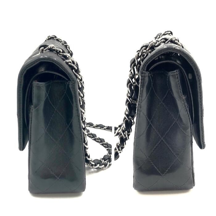 Chanel Matelasse Quilted Lambskin Chain CC Logo Bag Black Silver I0305Bq00366-Bb
