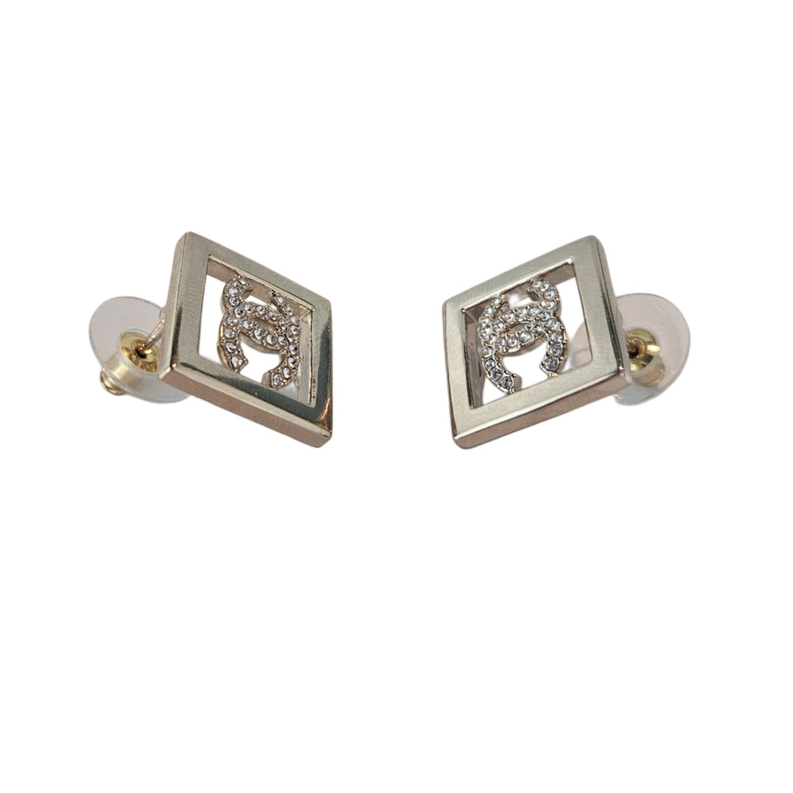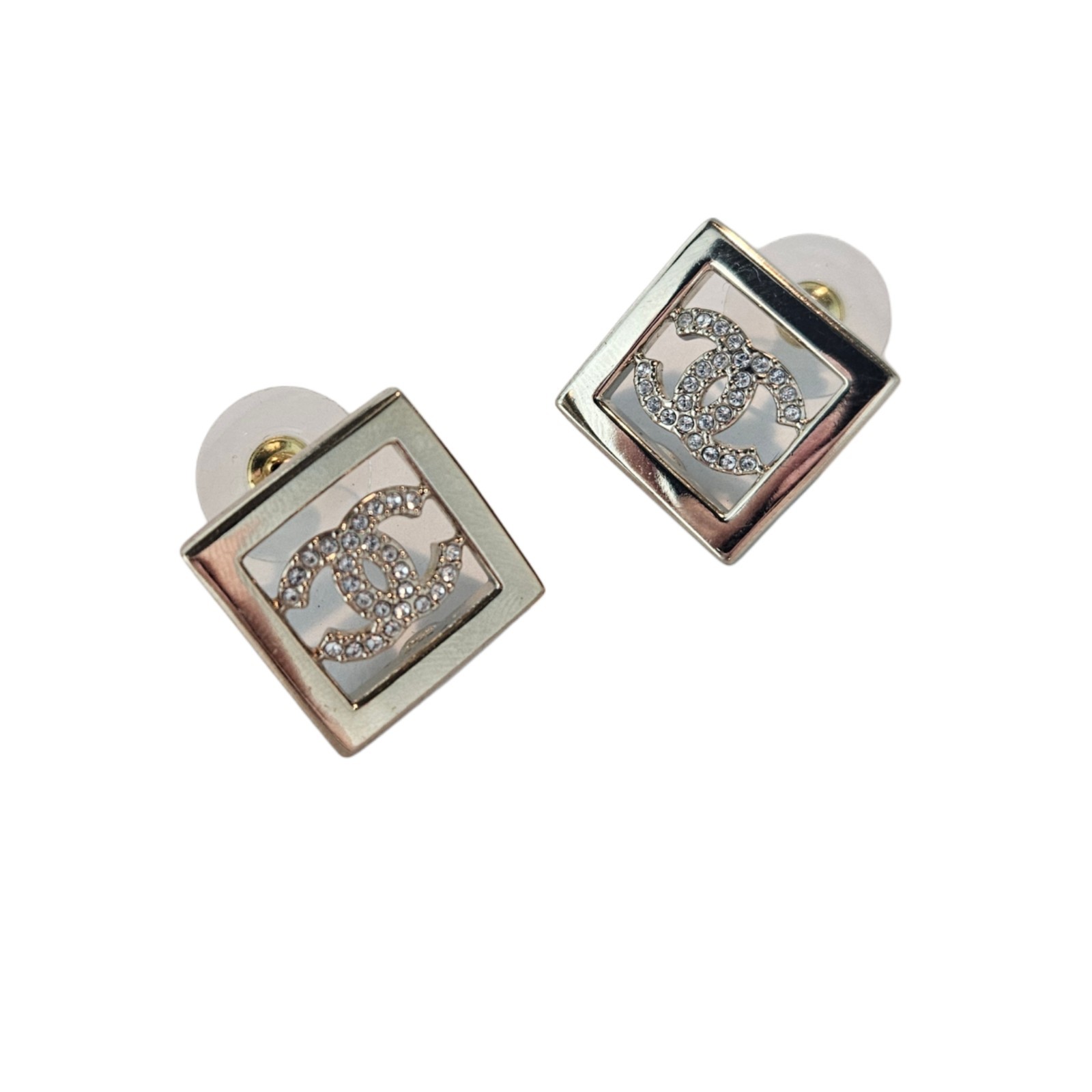 Chanel Metal Crystal Square CC Stud Earring Attributes Material : Metal & Crystal Color : Gold Tone Condition Desc. : Very Good