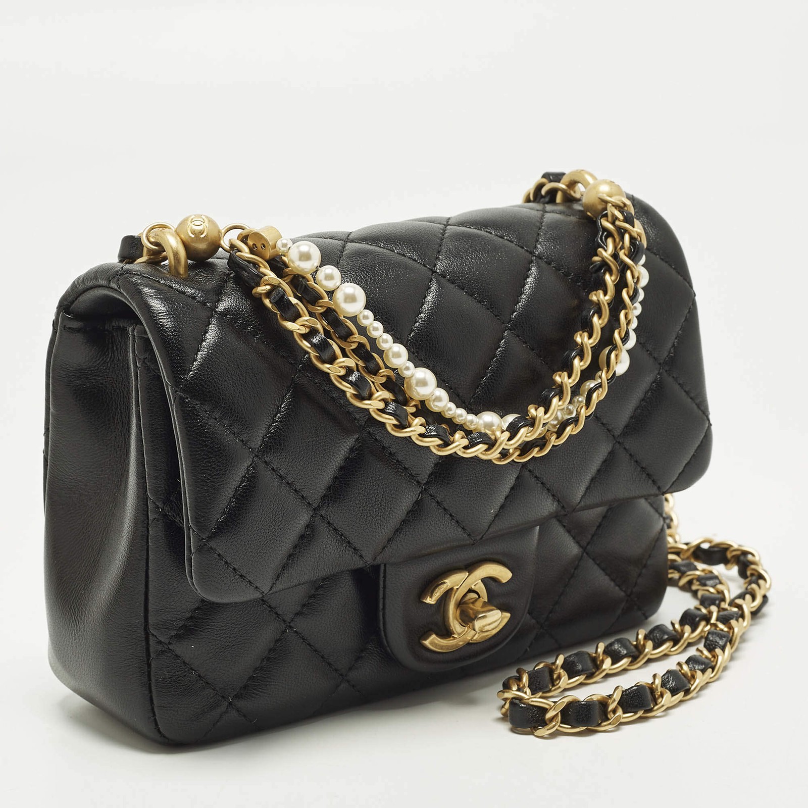 Our eBay Store About Us Contact Us Add to Favorite Sellers Chanel Square Mini Pearl Twist Black Quilted Leather Flap Bag This Chanel Square Mini flap bag is designed in black quilted leather with a compact square silhouette. The structured form maintains balance, while the flap closure completes the design. Ideal for curated wardrobes, it works seamlessly with both tailored and evening ensembles. Product Details Brand Chanel Includes Original Box Certified by The Luxury Closet This item has gone through a detailed authentication process overseen by our experts. We offer a lifetime guarantee of authenticity on all our items. How We Check The in-house team of experts at The Luxury Closet is highly trained to verify the authenticity and the condition of the luxury products. They ensure that only 100% authentic items are put on sale.The evaluation process is unique with its own mix of assessment criteria and differs according to the category. Each item is evaluated based on the following combination of hallmarks, hardware, stitching, symmetry, material, craftsmanship, stamping, codes, hologram stickers, and packaging. Our authenticators also check if the items have been modified or amended (e.g., aftermarket diamonds, replaced batteries, repaired bags, etc.) Please note that this handbag may have a perfume scent, as it was stored and packaged in Dubai where such fragrances are commonly used. International Buyers Import duties, taxes and charges are not included in the item price. These charges are the buyers responsibility. Please check with your country’s customs office to determine what these additional cost will be prior to buying.