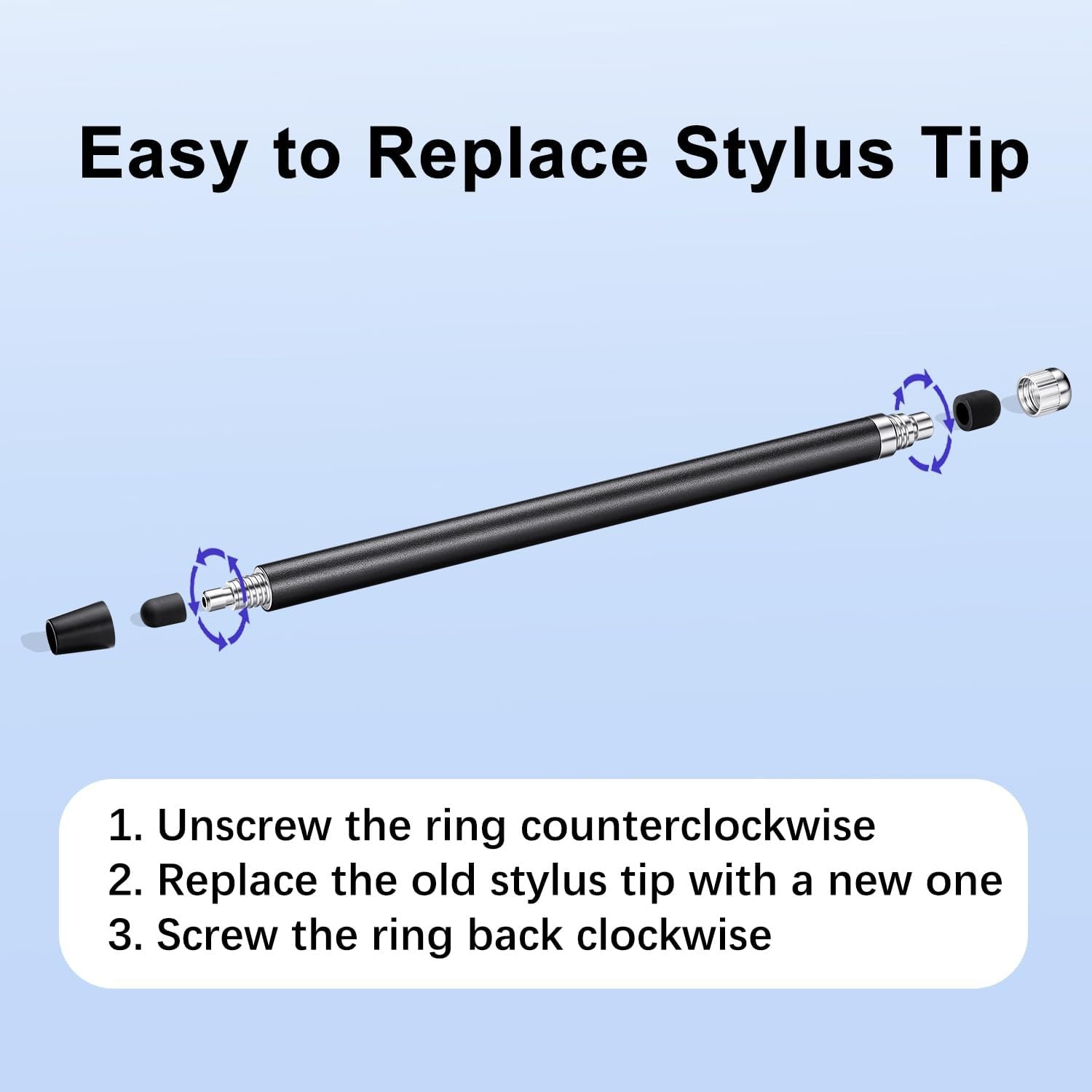 Free eBay listing template designed by dewiso.com ChaoQ Stylus Pen for Touchscreen, 3pcs High Sensitivity and Precision Stylus Pen for iPad iPhone Android and All Touch Screens (Black/Silver/Blue) FREE AND FAST SHIPPING! About this item Stylus Pen for Touchscreen: No Bluetooth or charging needed—use instantly on any capacitive touch screen (iPad, iPhone, Android, Samsung). Dual rubber tips (5mm/6.6mm) ensure precise control for writing, drawing, or gaming. Lightweight aluminum body with vibrant colors. Precision & Comfort Redefined: High sensitivity rubber tip glides smoothly without lag or scratches. Ergonomic design reduces wrist strain for extended use. Compatible with tablets, phones, and Laptops. Dual-Tip Flexibility: Switch between 0.20” and 0.26” rubber nibs for detailed art or bold notes. Anti-scratch, fingerprint-resistant tip. Pretty bright metal colors inspire creativity. Effortless Multi-Device Compatibility: Works seamlessly on Apple, Samsung, Android, and more. No apps or setup—just pick up and write. Perfect for notes, games, or gifts—ready to spark ideas instantly. Replaceable tips included for long-term use. Creative Freedom, Anywhere: Lightweight aluminum stylus with natural grip. Includes 6 replaceable tips and 3 color stylus pens. Perfect for sharing with friends, family, or colleagues, this bundle ensures you’re always equipped to capture inspiration. Product We offer a 30-Day Return Policy on items which you are not completely satisfied with. You have the option for a full-refund or an exchange of the item. No returns are available on items shipped outside of the US . Shipping We offer Free Shipping to the US and ship within 2 business days of payment, usually sooner. We use UPS express shipping. That's why your products are usually delivered within 3 days . Contact We try our very best to make sure every customer is completely satisfied. If there's a problem , message us! We're happy to help. 24/7 live chat available.