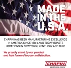 MADE IN THE USA WITH GLOBAL MATERIALS: designed and produced in the USA with US-based customer service and technical support, located at Chapin’s home base in Batavia, NY; backed by Chapin’s 1-year limited warranty SURESPRAY FILTER: anti-clog filter helps prevent clogging from dirt and debris in the tank, keeps you working with less downtime from disassembling sprayer parts to unclog filters COMPONENTS: reach further with the 12-inch poly extension wand and 34-inch PVC hose; dial in to spray a stream or shower with the adjustable poly cone nozzle COMFORT AND ERGONOMIC PUMP HANDLE: easily and comfortably lift and carry the sprayer around while working with the ergonomic pump handle; simple pump action to pressurize the tank SEALS AND GASKETS: use with common lawn and garden and weeds and pest chemicals or use it to soak vegetable gardens, hanging plants, and indoor/patio plants Easily tackle weeds, spray fertilizers, fight pests or water your hanging plants. Chapin’s 20000 1-gallon lawn and garden pump pressured sprayer is ideal for simple tasks inside and outside your home. Featuring the SureSpray in-tank anti-clog filter. This unique filter allows you to keep spraying even when there is dirt, grass or other debris in the tank. It continues to give you a clog-free, steady spray. The 1-gallon lightweight, rust-free polyethylene tank is translucent so it's easy to check fluid levels and the ergonomic pump handle makes carrying and pumping easy. Its funnel top design helps limit splashing while you’re filling the tank. Use this sprayer with common lawn, garden and pest control chemicals. Made in the USA with global materials and backed by Chapin’s 1-year limited warranty.