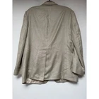 Chaps blazer in a versatile tan or beige hue, crafted from a textured blend of polyester, rayon, and a touch of linen for a refined yet breathable feel. This two-button sport coat features a classic notched lapel, front flap pockets, and a single back vent. The interior is elevated by a sophisticated paisley patterned lining, adding a subtle touch of personality to a timeless silhouette. Perfect for business casual settings or semi-formal events. Measurements: • Length: 32.5" • Chest (Pit to Pit): 23.5" (47" doubled)