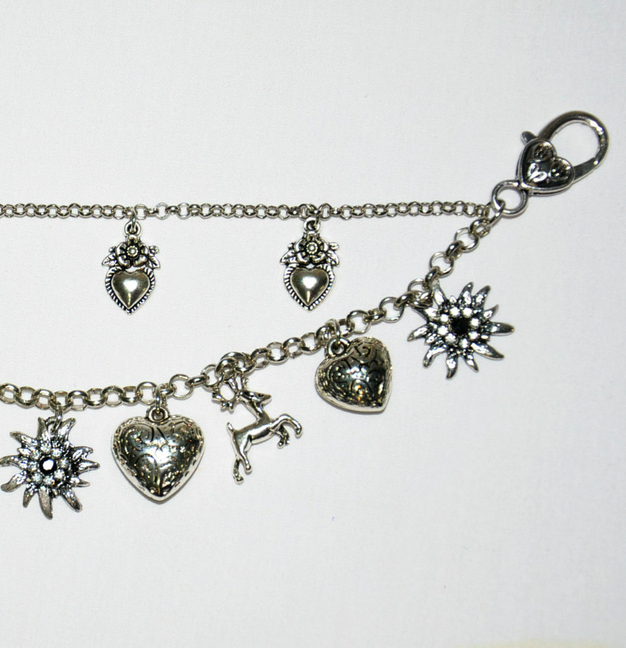 Charivari Dirndl Dress German Necklace Chain Oktoberfest EDELWEISS DEER HEART