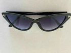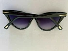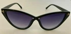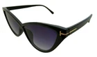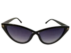 TRENDY CAT EYE ACETATE STYLE WITH METAL 'T' TEMPLE DECORATION. SHINY ACETATE STYLE WITH SHINY METAL T LOGO ON THE TEMPLE. 100% UV PROTECTION SIZE: 58-19-138