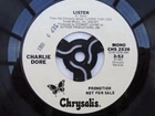Artist: Charlie Dore Title: Listen Format: 7" Label & Cat No: Chrysalis CHS2536 Grading: EX Year: 1981 Additional info: US pressing, demo, Listen/Listen *********************************************************************************** • thespacebar.records have been selling vinyl online for over 20 years. • We don't use stock photos. What you see is what you get. If we have multiple copies we'll send the best one. • If there are any issues when we come to pack up your record we will message to let you know and wait for you to confirm or cancel prior to shipping. • Much of our stock is in near-perfect condition. • Many items are unplayed but are graded conservatively as EX. • We're in the process of adding more photos to our listings. It's a big job. In the meantime if you'd like to see more images of any item, please send a message and we'll fast-track it. • We grade the vinyl 1st and the sleeve (if applicable) 2nd. • If there is only one grading and it seems very cheap, please check the item description carefully as we sell some records without sleeves and some sleeves without records. We always check with buyers before posting these items. • Singles that don't have a picture sleeve are supplied in an original company sleeve where possible. Otherwise they are sent in a plain white sleeve. • Records are supplied with a 400g polythene sleeve for protection. • To prevent seam splits, records are removed from their original sleeves for posting. • Everything is pressed in the UK unless otherwise stated in the item description. • More information/track listings/photographs available on request. Enjoy browsing our shop - Jeff & Catherine