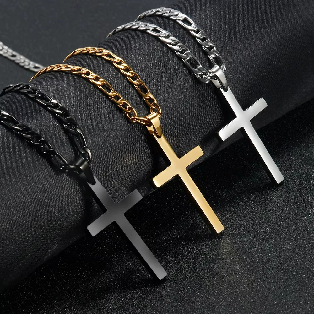 Creative Two-color Stainless Steel Hypotenuse Cross Pendent Necklace for Men