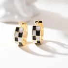 Checkered Hoop Earrings for Women, Black White Checker Small Hoop Earrings Plated with 16K Gold for Women Product Details Color: Gold Brand: POYAMUSE MPN: Does not apply UPC: Does not apply EAN: Does not apply Product Dimensions : 1.97 x 1.57 x 0.39 inches; 0.35 ounces Department : womens Date First Available : May 18, 2024 Manufacturer : FunMeow Brand, Seller, or Collection Name: POYAMUSE Metal stamp: 16K Metal: Zinc Material: Zinc Gem Type: No Gemstone Setting: Invisible Item Length: 1.97 inches Elevate your accessory game with these Chic Checkered Hoop Earrings, designed to complement your cool aesthetic effortlessly. Featuring a sleek black and white checkered pattern, these earrings add a touch of edgy style to any ensemble.Whether you're dressing up for race day or simply rocking a street style look, these versatile earrings are the perfect accessory. With their compact 1.5cm size, they offer a bold statement without overwhelming your outfit.Crafted from high-quality alloy and plated with 16K gold, these hoop earrings combine style with durability. The checkered design adds a modern twist to classic black and white jewelry, making them a standout piece in your collection.Whether you're treating yourself or surprising a fashion-forward friend, these Chic Checkered Hoop Earrings are sure to impress.