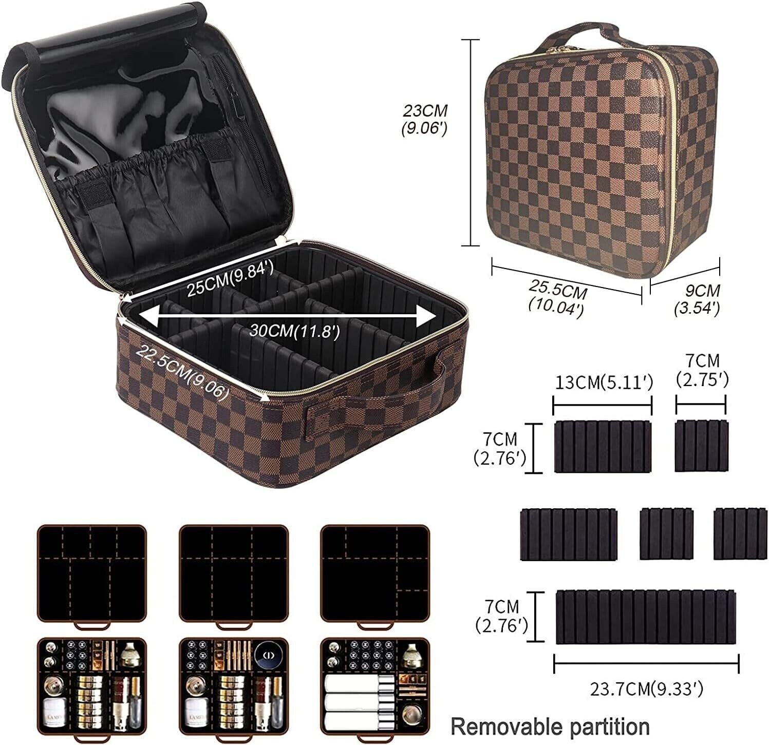 This makeup bag is a game-changer! The waterproof PU leather is super durable and easy to wipe clean, while the padded design keeps everything safe. Love the partition inside—perfect for organizing cosmetics, toiletries, and even small electronics. Spacious yet compact, it’s ideal for travel or daily use. The stylish checkered design adds a cute touch. Highly recommend!