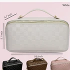 This makeup bag is a game-changer! The spacious design fits all my essentials, and the waterproof PU leather keeps everything safe. The large opening makes packing a breeze, and the stylish checkered pattern is so cute. Perfect for travel or everyday use—love how sturdy and portable it is!