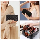 Love this stylish and practical makeup bag set! The waterproof PU leather is durable, and the spacious design with dividers keeps everything organized. Perfect for travel—holds all my essentials without taking up much space. The handles make it easy to carry, and the black checkered pattern looks chic. Great value for a 2-piece set!