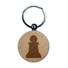 Chess Pawn Piece Engraved Wood Round Keychain Tag Charm