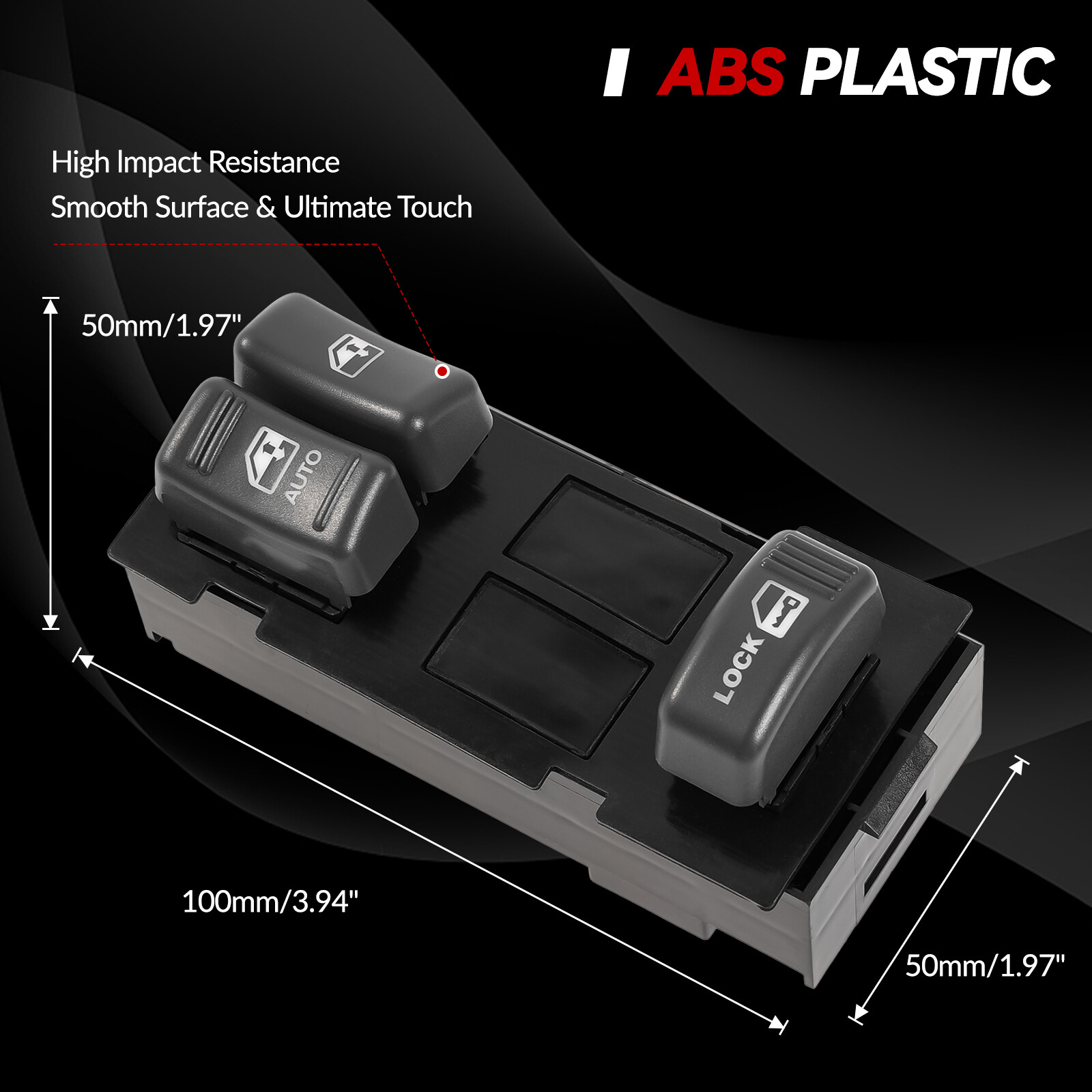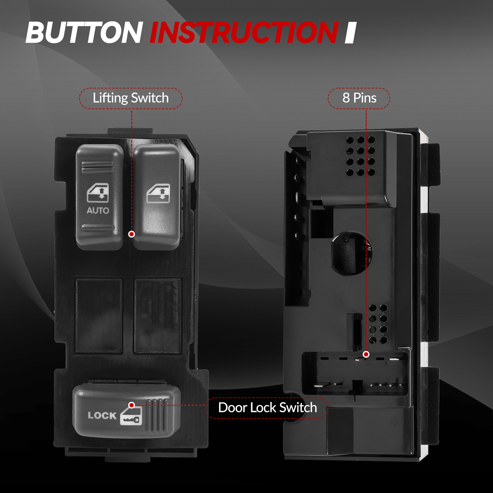 This power window and door lock switch is a perfect direct replacement for my Chevy Tahoe! The fit was exact, just like the original, and installation took minutes. The buttons feel sturdy, with a nice tactile response, and the black/gray color matches the interior perfectly. Works flawlessly for both windows and locks—no more struggling with a faulty switch. Great quality for the price, and it arrived quickly. Highly recommend if you need a reliable OEM-style switch for your Chevy or GMC truck!