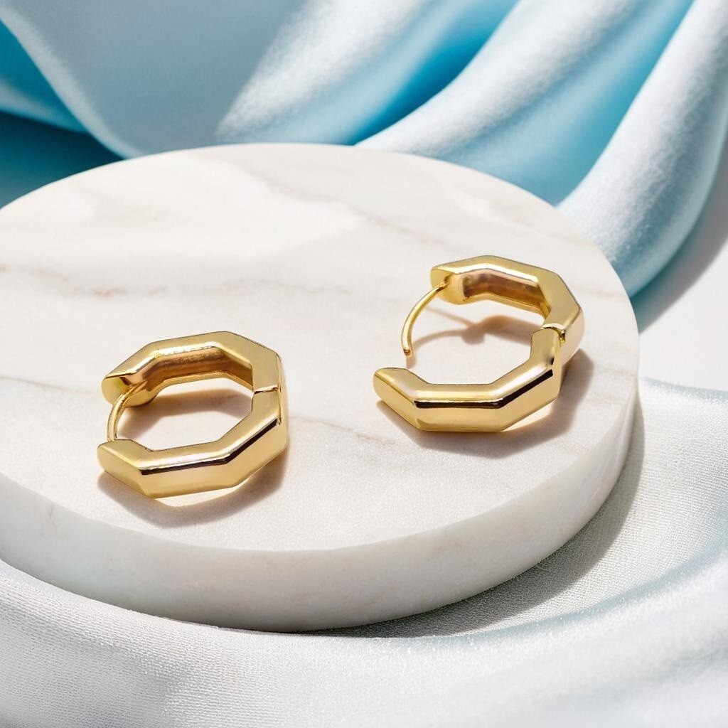 Add a touch of sophistication to your jewellery collection with these Geometric Huggie Hoop Earrings. Fashioned in a chic yellow gold plating, these earrings exude a timeless appeal with their sleek round shape and hinged closure, designed for both comfort and ease of wear. Ideal for any occasion, from birthdays to Christmas or simply to elevate your everyday look, these earrings are versatile and stylish. Crafted with care, these earrings boast a 14k metal purity and are accentuated by a bohemian, love, and beauty-themed design. The earrings are 20 mm in length and 22 mm in diameter, making a bold statement without the addition of stones. With a flush setting style and an ideal cut grade, they offer an elegant and loving gesture to yourself or a loved one.