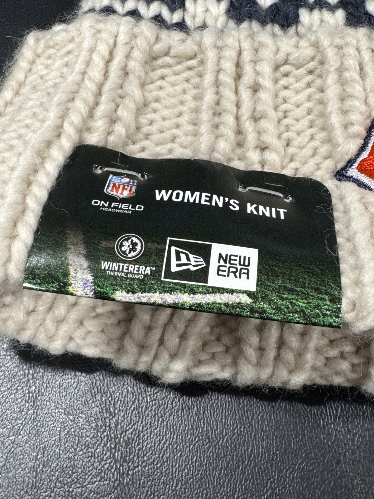 The Chicago Bears Women's Knit Team Cuffed Fleece Lined Beanie Cap is an officially licensed NFL product designed for female fans of the Chicago Bears. This one-size cap features a multi-color design and is fleece lined for added warmth and comfort. With the Chicago Bears team logo prominently displayed, this cap is perfect for showing team spirit during football season. Ideal for cold weather games or everyday wear, this beanie cap is brand new with tags, ensuring its quality and authenticity.