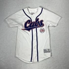 Vintage Chicago Cubs Jersey Size Adult M Only stain is on left shoulder, I have not tried to remove it. It does have buttons in perfect condition, they’re not shown though. Comes from a nonsmoking, pet free household. *First image stock image*