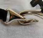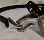 New with Tags Chicos Captain Hook Black Leather Trouser Belt Size M/L Adjustable NEW WITH TAGS 43" fully extended ** NOTE some marks/tarnishing on bottom of buckle. See photos for detail. Questions? Please ask! Shipping can be combined on multiple items. Recycled shipping materials are used whenever possible. All items ship from a pet-friendly environment. Thank you for looking!