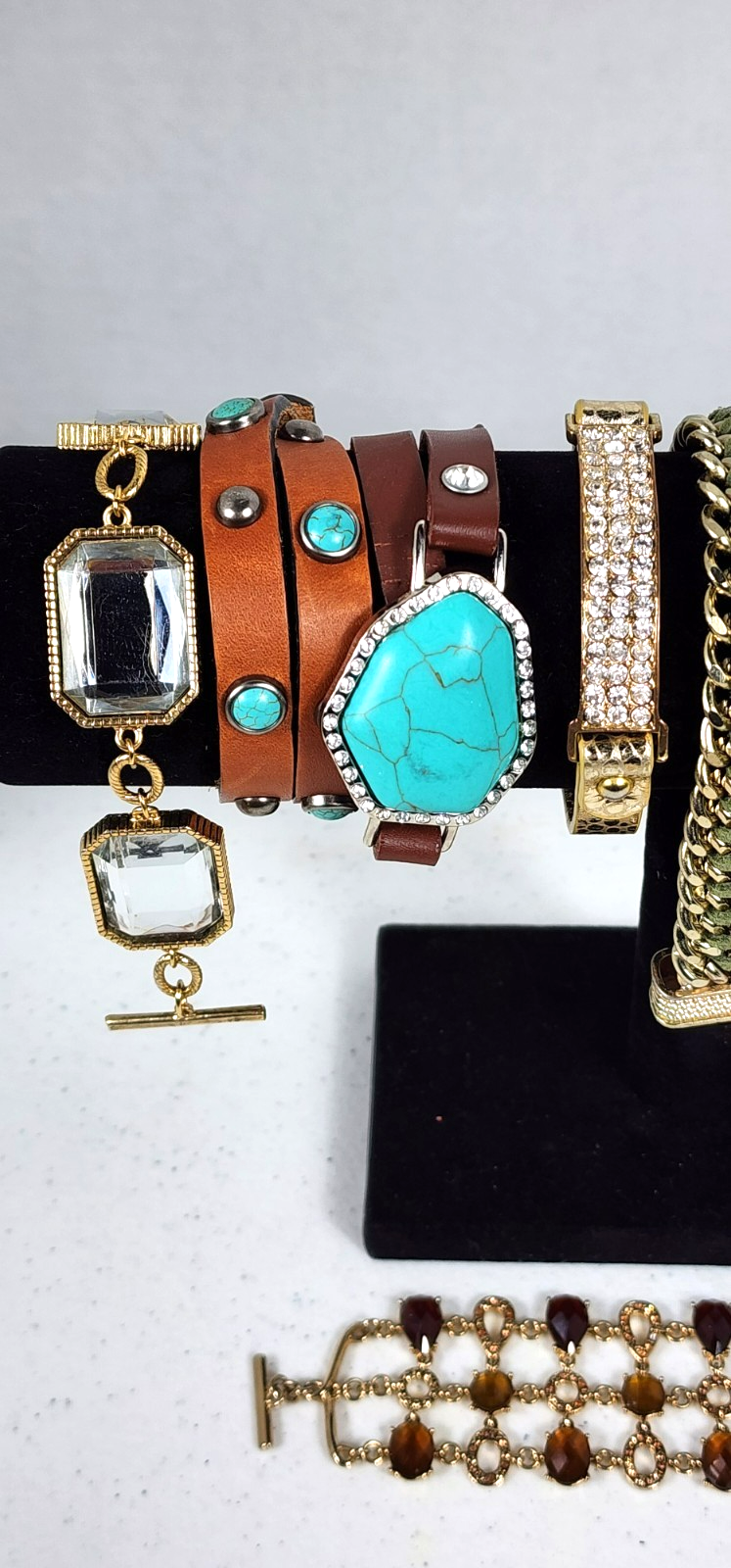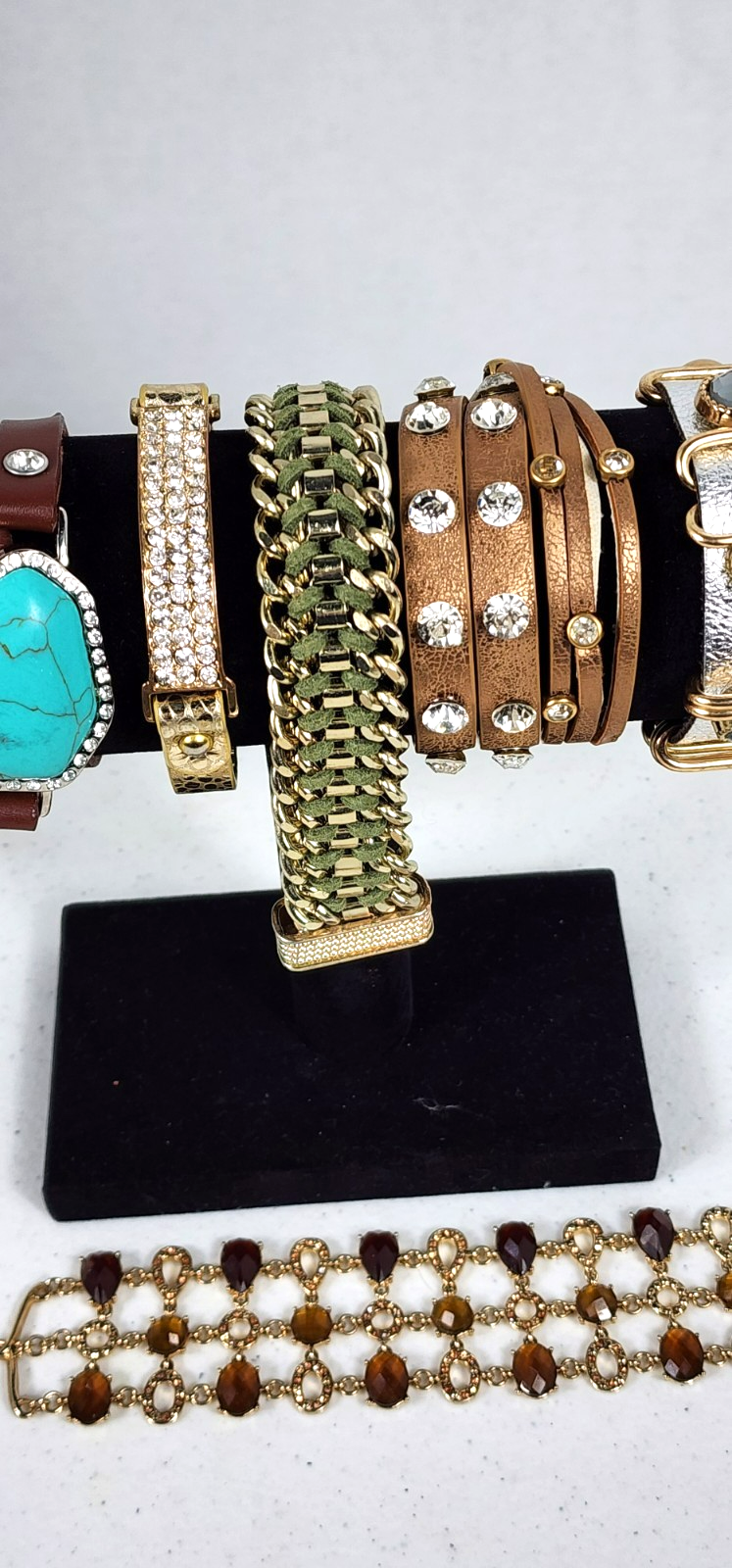 Condition Rating A EXCELLENT TO Good condition with minor signs of use. Item description: 9 BRACELETS. SEVERAL ARE FROM CHICOS, ALL STONES PRESENT, ALL SNAPS PRESENT, NO MISSING PARTS. SOME WRAP AROUND WRIST SEVERAL TIMES THEN SNAPS CLOSURE. Please scan, enlarge and review all photos closely for they are a large part of the description. Photos are of the actual item offered for sale. I try to describe items as accurately as I can. Ask questions prior to purchase. Payment : please pay immediately Communication: Please contact me if you have any questions prior to purchase. Shipping and handling: ship within 1 business day whenever possible. Please verify your address during checkout. I offer free returns within 30 days , if item doesn't match the description. Returns must be initiated within 7 days after delivery. Item must come back in the same condition and packaging as it was sent to you for a refund