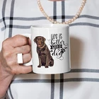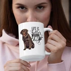 Chocolate Lab Coffee Muglabrador Mug Labrador Owner Mug Labrador Mom Mug Labrador Dad Mug Labrador Lover Mug Labrador Dad Gift Product Details.. This high quality 11oz. ceramic white mug has a premium hard coat that provides crisp and vibrant color reproduction sure to last for years. Perfect for all hot & cold beverages. The highest quality printing possible is used. It will never fade no matter how many times you wash it. Material: 100% Ceramic. Print both sides. Dishwasher and Microwave Safe. High Gloss + Premium White Finish. Printed in the U.S.A. Personalized & Custom. We support personalized and custom mug to add custom, when placing an order, you can add notes to the "order note" in shipping address section. Also you can contact us directly via message. Shipping Info. Ready to ship in 1 to 2 business days, All products are made-to-order and proudly printed in the United States. Shipped by USPS and DHL, You will receive your order in 5-7 days. Replace & Refund. All products are defective during shipping broken, chipped will be replaced free of charge. You are not satisfied with the product, we will refund 100% money to you. If any other issues arise, please do not hesitate to message, we would be more than happy to assist you.