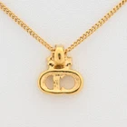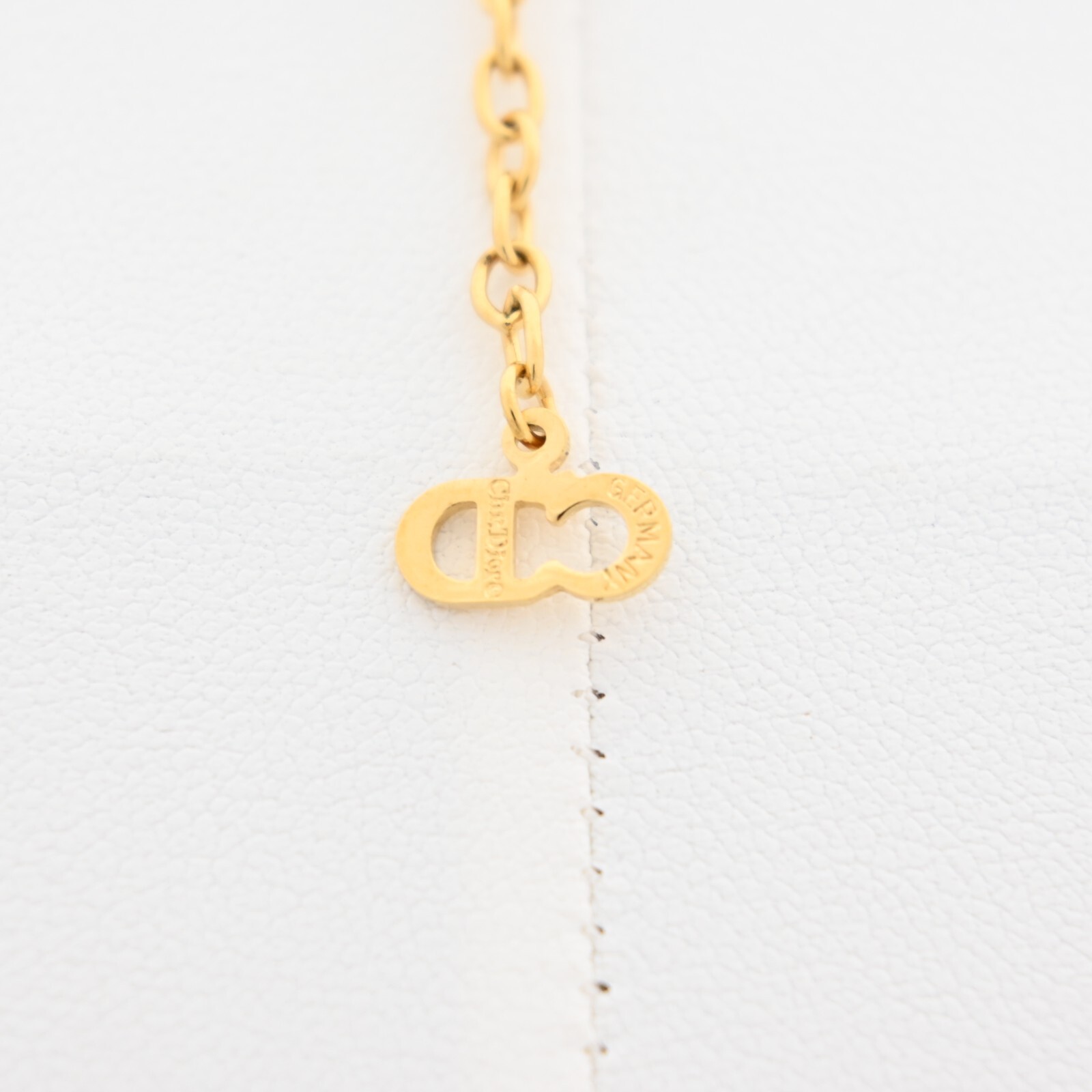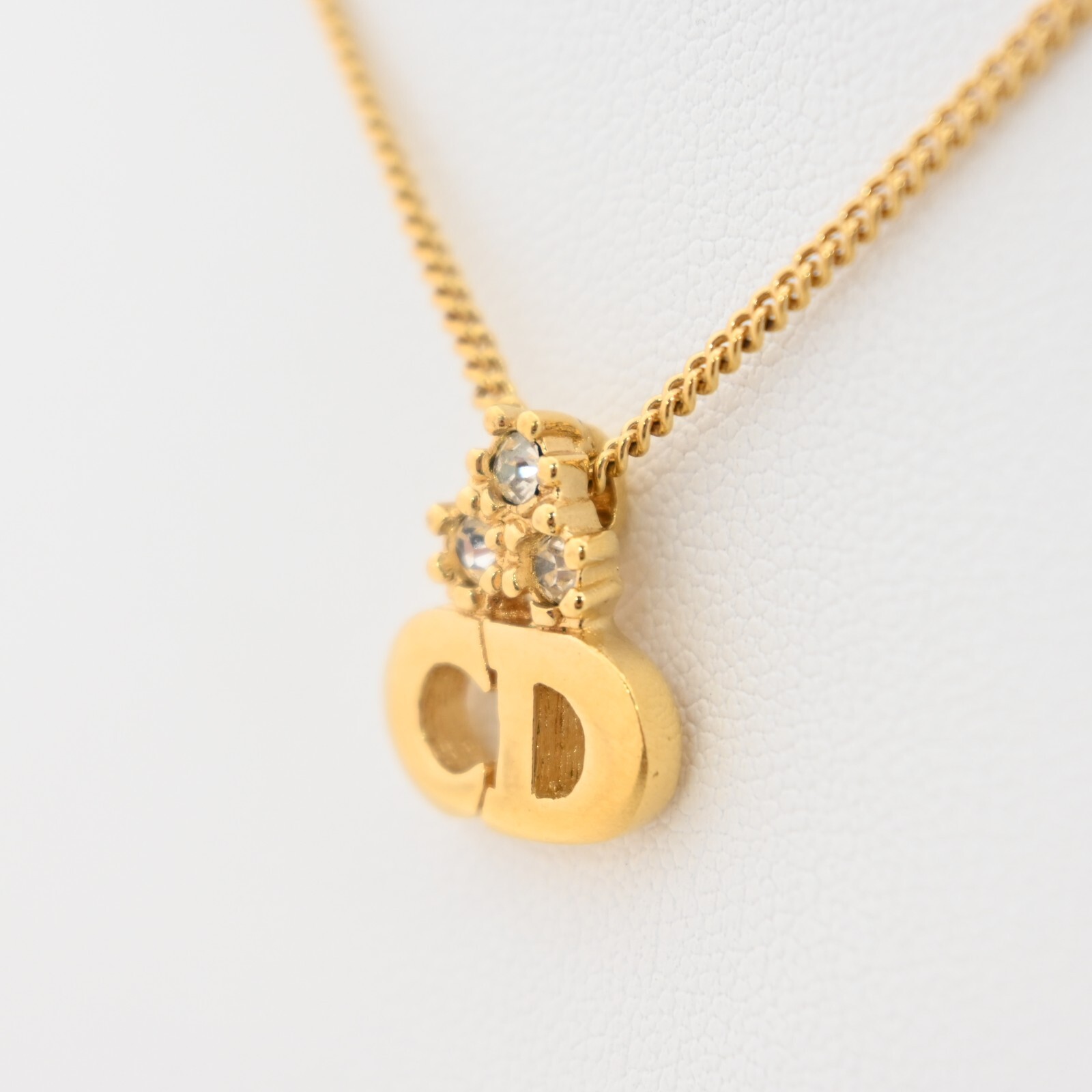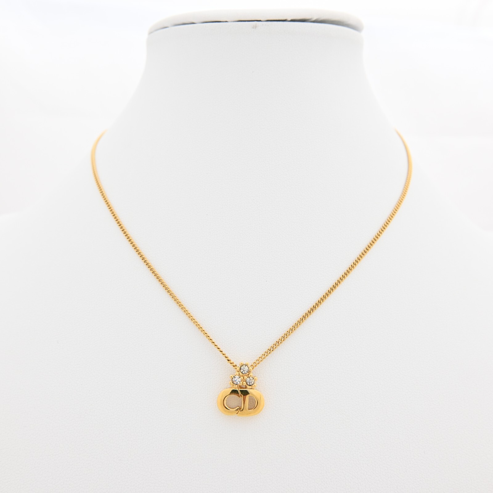 Christian Dior CD Logo Rhinestone Gold Necklace with Circle Motif di7707cf
