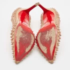 Our eBay Store About Us Contact Us Add to Favorite Sellers Christian Louboutin Beige Patent Leather Pigalle Spikes Pointed Toe Pumps Size Dazzle everyone with these Louboutins! Crafted from patent leather, these beige pumps carry a mesmerizing shape with pointed toes, multiple spikes adorning the exterior, and 10.5 cm heels. Complete with the signature red soles, this pair truly embodies the fine art of shoemaking. Product Details Brand Christian Louboutin Color Beige Includes The Luxury Closet Packaging Outsole Length 23 cm Outsole Width 8 cm Size 38 Certified by The Luxury Closet This item has gone through a detailed authentication process overseen by our experts. We offer a lifetime guarantee of authenticity on all our items. How We Check The in-house team of experts at The Luxury Closet is highly trained to verify the authenticity and the condition of the luxury products. They ensure that only 100% authentic items are put on sale.The evaluation process is unique with its own mix of assessment criteria and differs according to the category. Each item is evaluated based on the following combination of hallmarks, hardware, stitching, symmetry, material, craftsmanship, stamping, codes, hologram stickers, and packaging. Our authenticators also check if the items have been modified or amended (e.g., aftermarket diamonds, replaced batteries, repaired bags, etc.) International Buyers Import duties, taxes and charges are not included in the item price. These charges are the buyers responsibility. Please check with your country’s customs office to determine what these additional cost will be prior to buying.