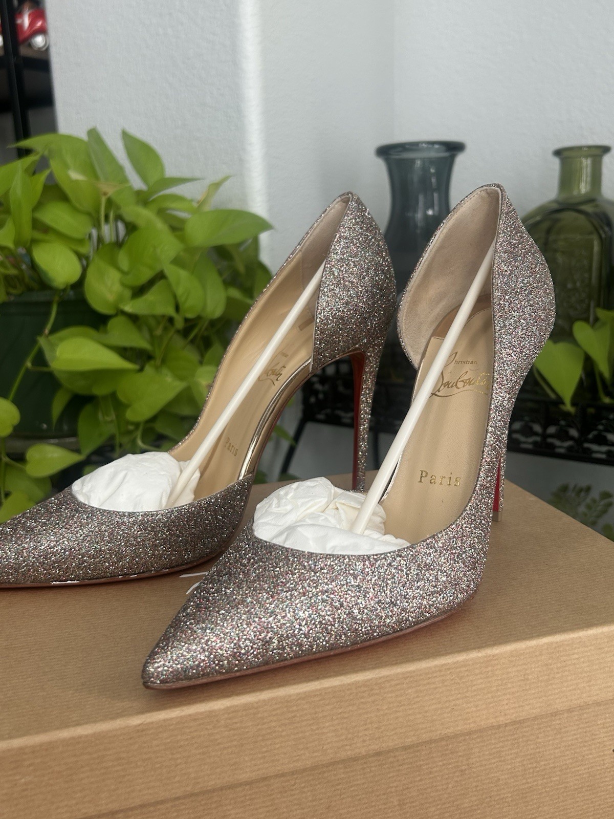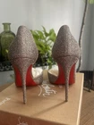 Christian Louboutin Iriza 100Blush Glitter, Added 3m Heel Protecter on the Soles, NEVER WORN, MINT CONDITION, SIZE 39.5, Includes Two Dust Bags for both Shoes