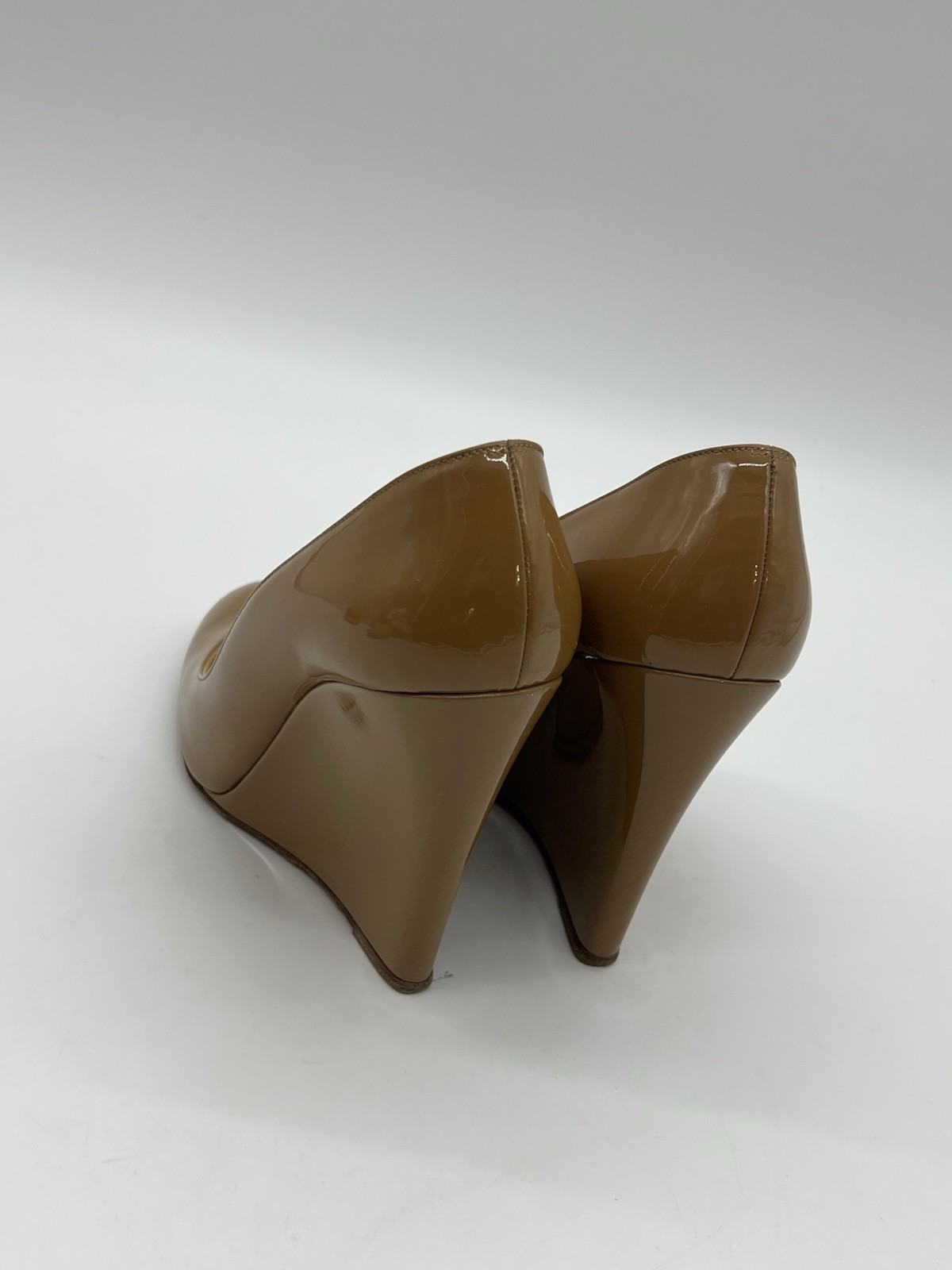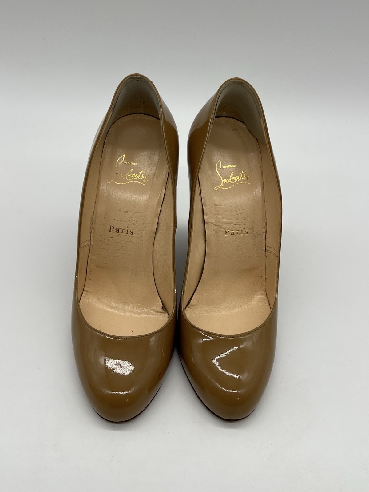 Christian Louboutin Tan Patent Leather Women's Sz 40 US 10 Slip On Wedge Shoes. Shoes are in used condition and has signs of wear but shoes are still in good condition. Upper leather is in good condition and clean , inside is clean and the soles are in good condition. Nice comfortable shoes for casual wear or business wear. Condition is pre-owned. Shipped with usps priority mail. Sold as pictures. Thank you! Feel free to message me for any questions. Thank you