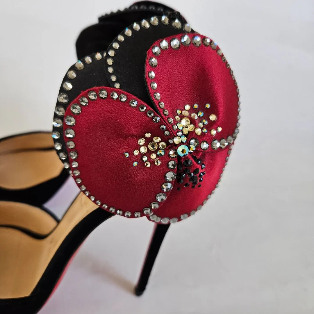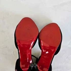Christian Louboutin black velvet Pensamoi sandals Material: Suede Color: Black Size: 36.5 Heel height: 10.5 cm Condition: Excellent; used gently; outsole has been protected