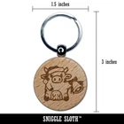 Christmas Cow Santa Hat Bell Engraved Wood Round Keychain Tag Charm