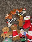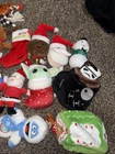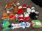 This is a lot of 16 Christmas dog toys, designed for medium-sized dogs. They are about 10 inches or more in size. They are in good condition as they contain no rips, tears, or stains. The toys are made of plush material and feature multiple brands. The lot includes hide and seek toys, squeaky toys, crinkle toys, rope toys, and interactive toys. Brands included are Bark, Go Dog, Chewy, and more. The assortment of stuffed toys is sure to provide entertainment and fun for your furry friend during the holiday season.