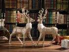 reindeer figurines for Christmas decoration, holiday party gift. Perfect for use on a mantel, shelf or tabletop in the dining room, living room, etc. Reindeer figurines made of high quality plastic with gold glitter finish. For indoor use only. Looks gorgeous in a winter scene wiht greenery & lights. Deer statues can be used as a decoration inside your home year round, not just at the holidays. Reindeer Size: 9" x 12.6" Package inclued 2 sets deer statues Set of 2 standing champagne gold glitter reindeer statues, perfect for christmas party decorations, look gorgeous in the winter scene with greenery & lights. Reindeer measures approximately 9" x 12.6", this size also fit for display on a tabletop or as part of a shelf arrangement. It's best present for family, friends, host. Let's the holiday party have festive atmosphere. Our Christmas elegance collection will be the perfect Christmas accent to complement all of your other seasonal decor. These reindeer figurines made of high quality plastic and finished in gold glittering will shine and sparkle in the holiday lights. Timeless home decor you will love year after year.