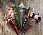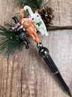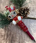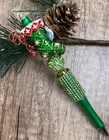 Get into the holiday spirit with this festive Christmas pen! Perfect for any occasion, this handmade pen is crafted with rhinestone and acrylic beads, and a plastic pen barrel. The retractable feature adds an extra touch of convenience, making it easy to use and store. This collectible pen is ideal for Secret Santa, Stocking Stuffer, or Party gifts, and is sure to bring a smile to anyone's face. With its sleek black ink color, this pen is not only stylish, but also practical for everyday use. Don't miss out on the opportunity to add this unique and charming pen to your collection! Price includes one pen. Free black ink refill included. Not suitable for small children.