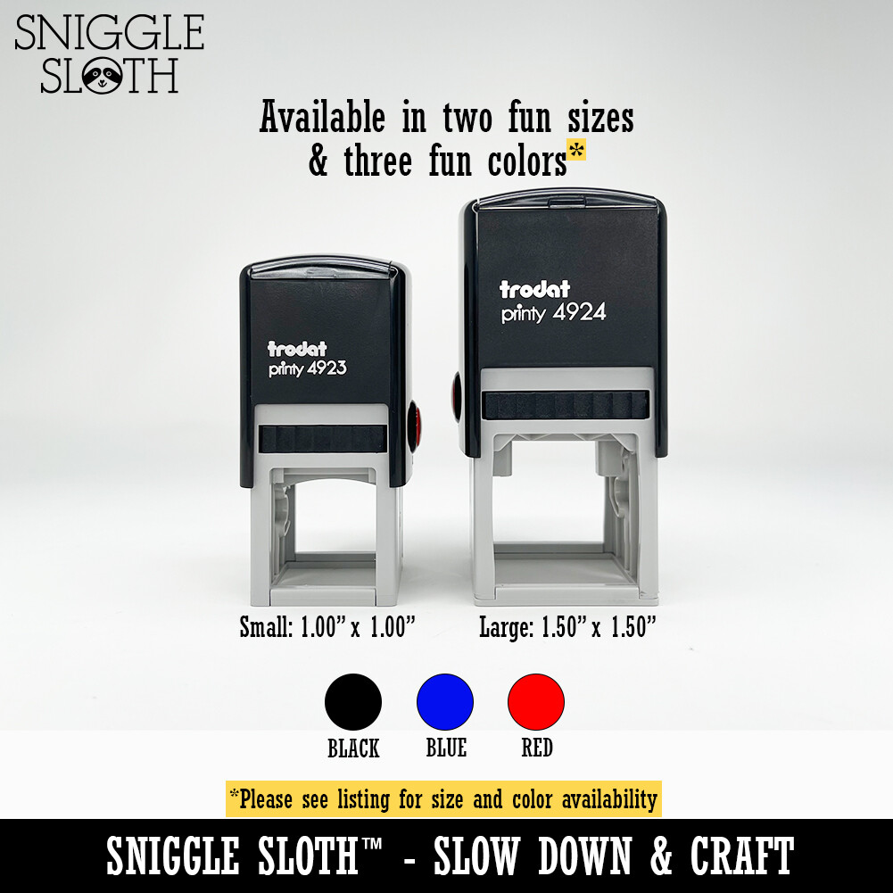 Slow down and craft with this charming self-inking rubber stamp from Sniggle Sloth. The stamp design shown features deeply etched rubber for excellent clarity. The stamp includes its own ink pad in the color listed for an all-in-one solution. The design is located on top of the stamp for easy identification. The size listed refers to the longest side of the stamp design. Use for stamping paper, folders, cards, gift wrap, journals, planners, and more. Use alone or combine with other Sniggle Sloth stamps. The stamp's ink pad can be easily removed to be re-inked to extend the stamp's usefulness. The materials in this stamp are sourced from top US companies and assembled in our Sniggle Sloth California facility to form a high-quality product you'll cherish for years.