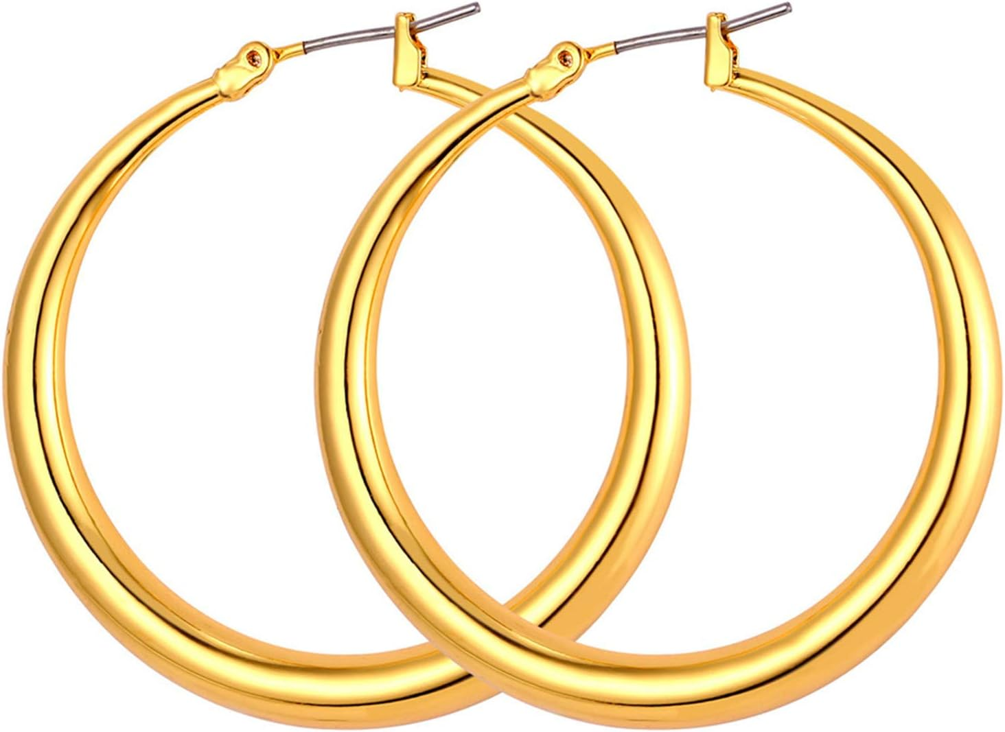 Love these chunky hoops! The gold finish is so shiny and elegant, and the 40mm size is perfect—bold but not overwhelming. They feel sturdy, sit comfortably, and go with everything from casual outfits to dressy looks. The polished design adds a luxe touch without being too flashy. Definitely a great addition to my jewelry collection!