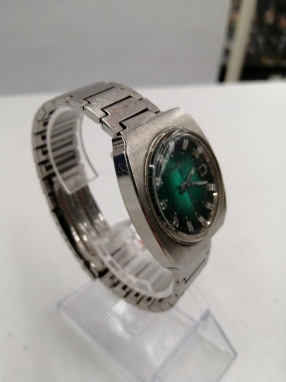 This Citizen watch is a stylish and reliable Japanese timepiece with a sleek automatic movement. The condition is as shown in photos—check carefully before buying. If the second hand isn’t moving, it could just need a new battery. Great for watch enthusiasts who appreciate quality craftsmanship. Import duties may apply when shipping to the US, but it’s worth it for this elegant piece. Highly recommended for collectors or anyone wanting a sophisticated automatic watch!
