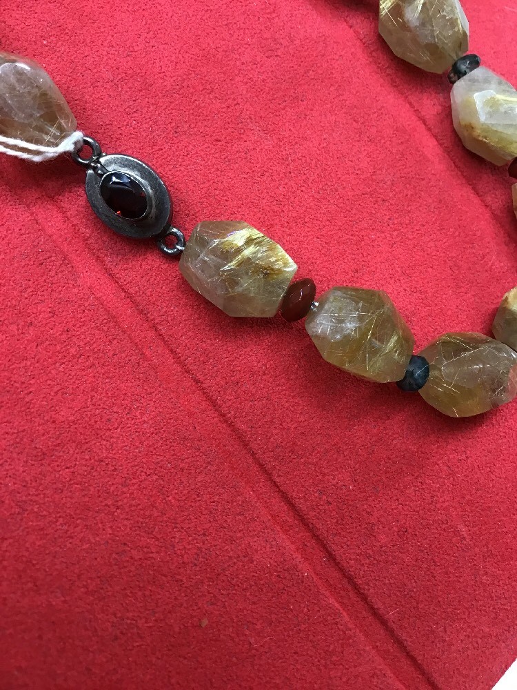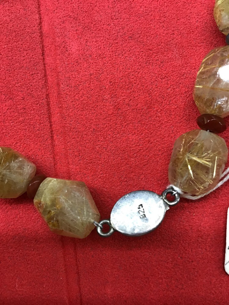 Citrine Carnelian Green Beads Garnet Necklace 925 Silver Clasp 16 Inch