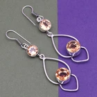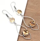 Citrine Topaz Gemstone Ethnic Silver Earrings for Women and Men 1.5 Inches