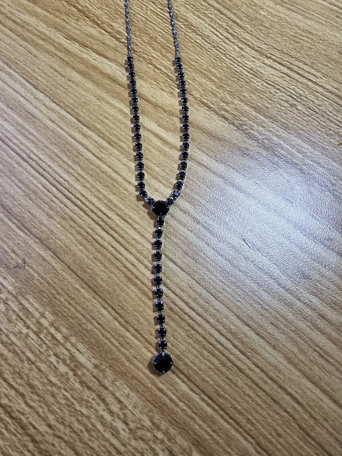 CLAIRE'S BLACK STONE SILVER COLOR 16" DANGLE -Y- NECKLACE Great condition. Please check out my other listings as well!