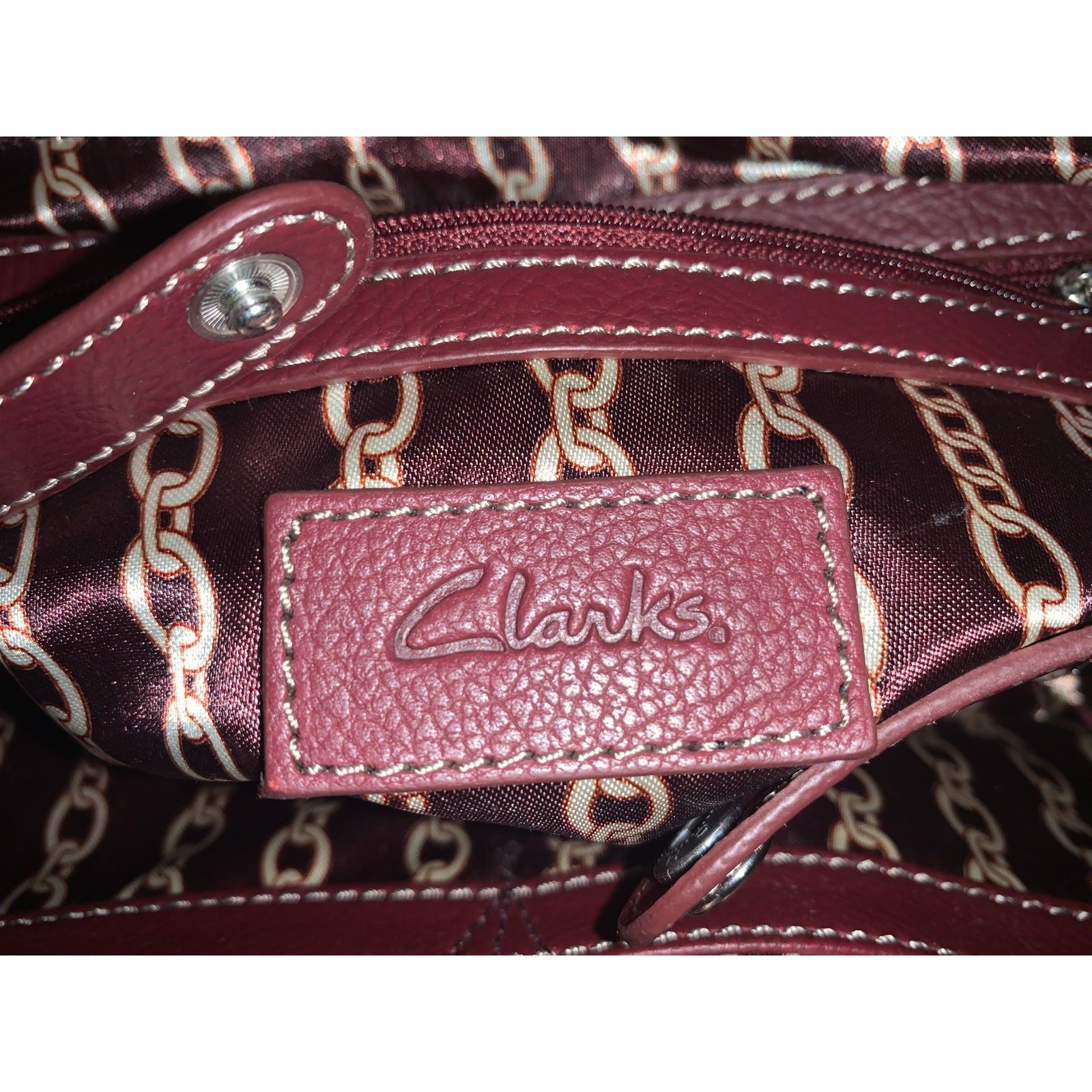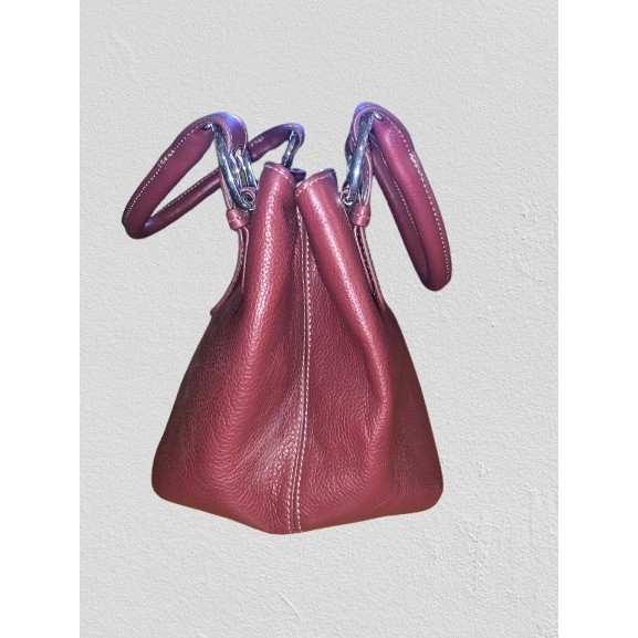 The Clarks Red Leather Purse with Top Handle is a stylish and functional satchel/top handle bag perfect for women on the go. Made with pebbled red leather, this medium-sized bag features a rectangular shape with a zip closure and double red handles for easy carrying. The interior is lined with fabric and includes inner pockets for organization. With silver hardware accents and a multicolor lining, this purse adds a pop of color to any outfit. Perfect for everyday use or special occasions, this Clarks purse combines practicality with a touch of sophistication.