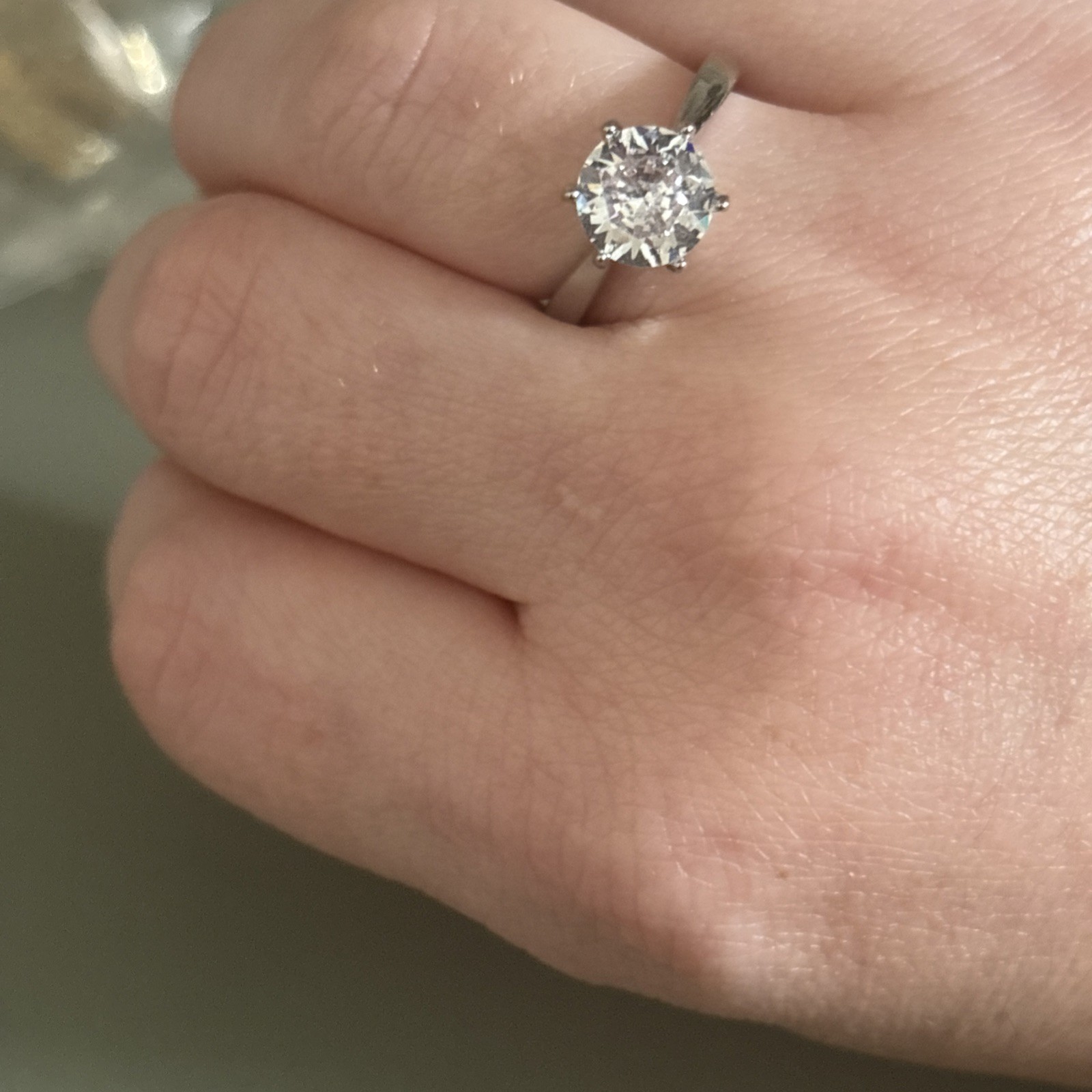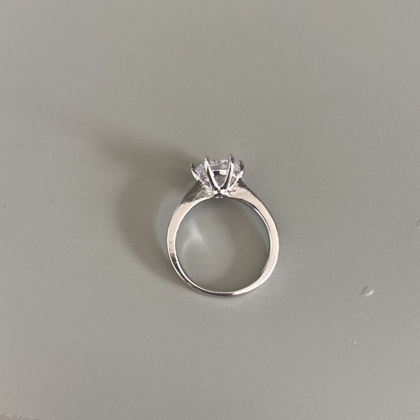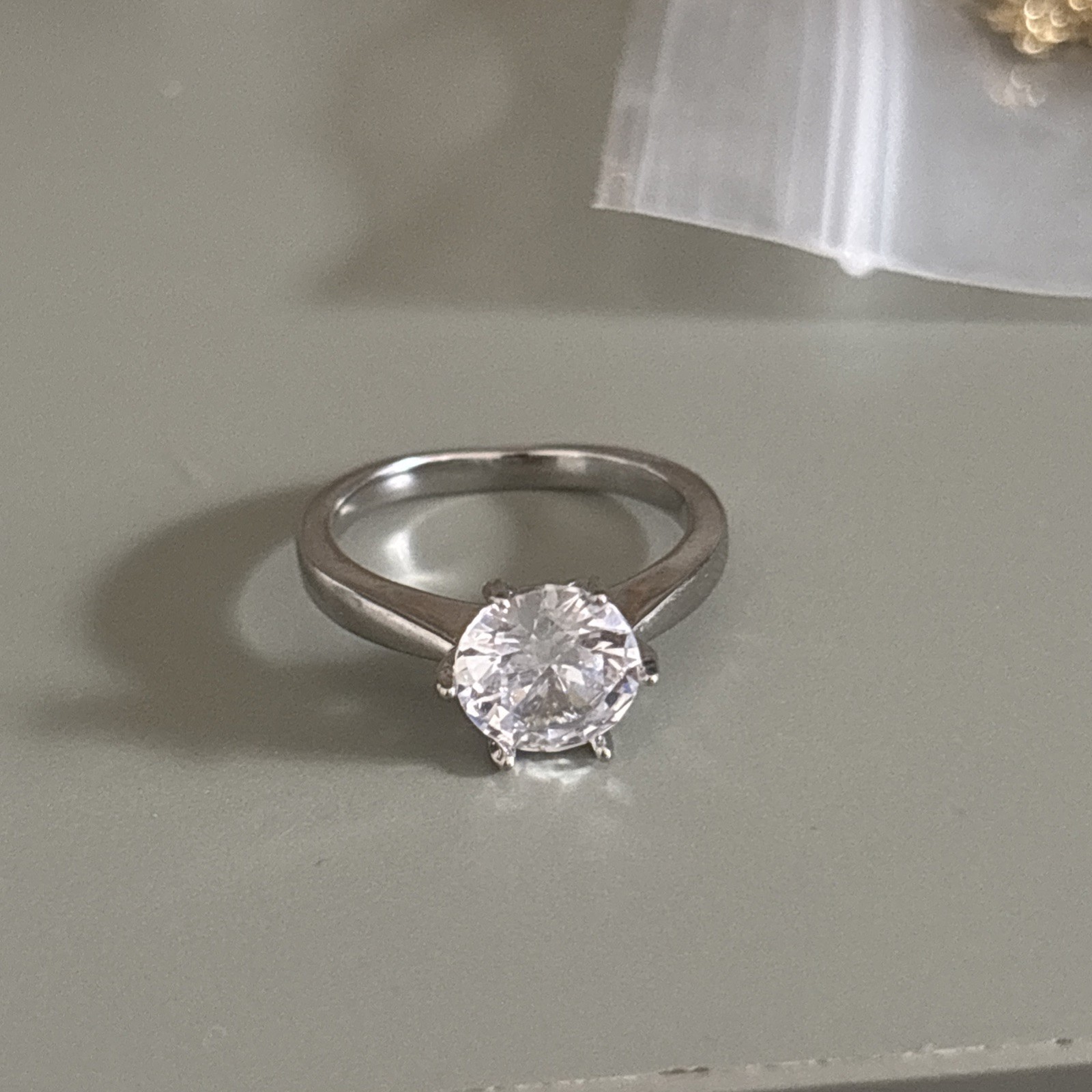 The Classic Engagement Ring in size 6 is crafted with 18k white gold plated metal, making it a timeless and elegant choice for a special occasion. The ring features a sparkling cubic zirconia as the main stone, adding a touch of glamour and sophistication to the design. Perfect for symbolizing love and commitment, this engagement ring is sure to make a lasting impression on the recipient's heart.