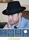 Crushable & Packable – You’ll want to take this 100% wool fedora hat everywhere you go. This travel-friendly men’s felt fedora can be crushed and rolled up for easy packing, storage, or even getting tucked into your pocket. Be Inspired – It’s a classic look from a classic era, where a hat was a staple in every man’s wardrobe and required only the best in quality, style, and class. Embrace today with a touch of the past, a modern take on an iconic look. Keep it Cool – A hat is about style and function. These imported, hand-washable fedora hats for men mix tradition with a fresh approach to modern headwear while also keeping the sun out of your eyes. Stay cool with your statement. Water-Repellent – This crushable fedora is the ideal addition to your collection for cold and wet weather. Featuring a wide band and a divot at the crown, water won’t collect here and drench you or your hat. Uncompromising – means style and function uncompromised. You can enjoy a timeless look and exude a classy charm while still protecting yourself from the elements.