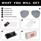 100 % POLARIZED LENSES:Polycarbonate is highly transparent to visible light. Polarization and UV400 protection makes these sunglasses the perfect choice for outdoor sports and various activities such as driving, fishing, skiing, travelling, hiking, boating etc. They absorb 100 % of UV light and eliminate 99 % glare light. CLASSIC FASHION DESIGN:Classic aviator sunglasses designed by famous designer. The traditional shape of the glasses is merged into the modern minimalist style to make the contour lines smoother. The combination of gorgeous metal frame design and various colors gives glasses the characteristics of a new era. HIGH QUALITY FRAME:Made with metallic alloy that is ultra light weight yet strong and durable. It comes with spring loaded hinged legs and adjustable silicon nose pads which allows for maximum comfort and flexibility. PRODUCT MEASUREMENTS:Lens width: 58 mm/2.28 " Lens height: 50 mm/1.97 " Bridge width: 14 mm/0.55 " Frame width: 140 mm/5.51 " Arm length: 135 mm/5.31 " EXQUISITE PACKAGING:Sunglasses 1, microfiber pouch 1, microfiber glasses cleaning cloth 1, leather case box 1, glasses box 1, mini Screwdriver 1. It is also a gift packaged ready, making it a wonderful yet practical gift idea for friends and family!