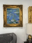 Oscar-Claude Monet oil on canvas style of painting Monet was a French painter and a key figure in the Impressionist movement. His work, characterized by bright colors, light brushstrokes, and uncluttered nature, revolutionized modern art. Monet was a prolific practitioner of Impressionism's philosophy of capturing one's perceptions of nature, particularly through plein-air landscape painting. He often painted outdoors, directly on compositions he would later revise in his studio. Please Note: This beautiful art work is sold as Attributed to the artist. Image size 24 x 20 inches frame size 34 x 29 1/2 inches