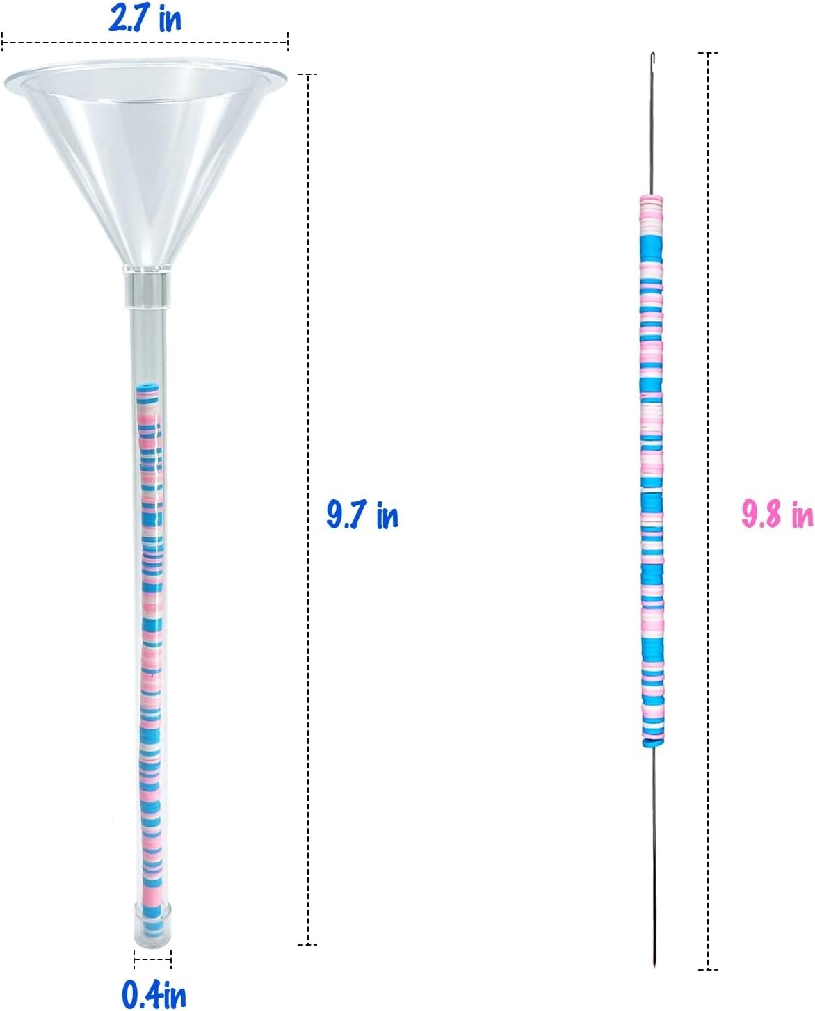 Our beading tools kit for clay bead come with 2 x Beading Funnel, 2 x Beading Needles.2 x Bead Stoppers. Simple idea, incredible effective beading experience, It takes less than 1 minute to complete a 5 inch long clay bead chain. Beading like a professional, our beading funnel is super easy to usage. help you make beautiful clay bead bracelets and nacklaces more fun. In order to optimise your beading experience, we have thoughtfully provided additional accessories. 1)Extra-long needles improve efficiency. 2) Beading stoppers prevent beads from sliding off the string. Suitable for (6mm) clay bead only.