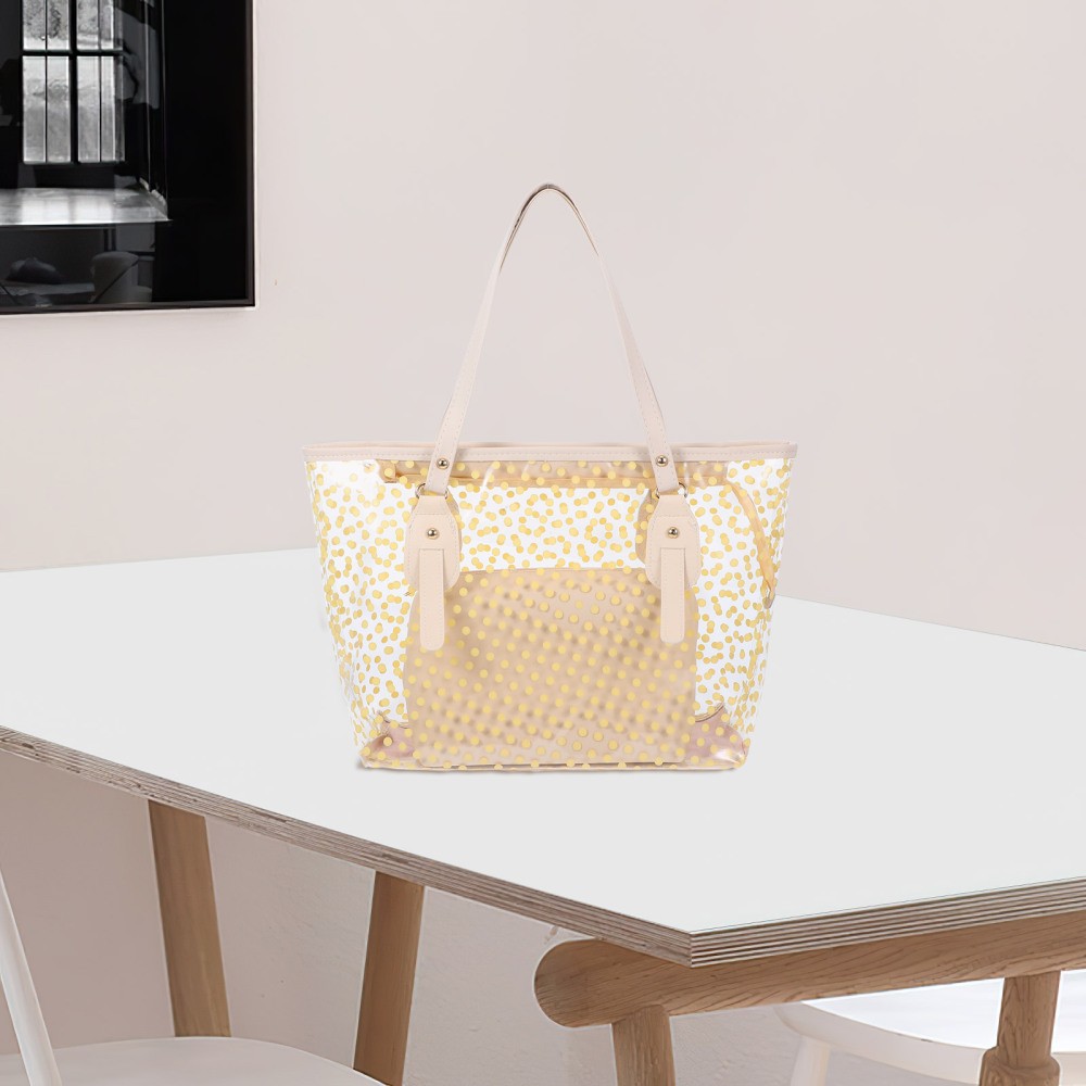 This clear shoulder tote is perfect for beach trips or casual outings—lightweight yet sturdy with plenty of space! The high-elastic straps make it easy to secure to luggage or a bike, and the stylish design keeps essentials visible and organized. Great value for the price, highly recommend for travel or everyday use!
