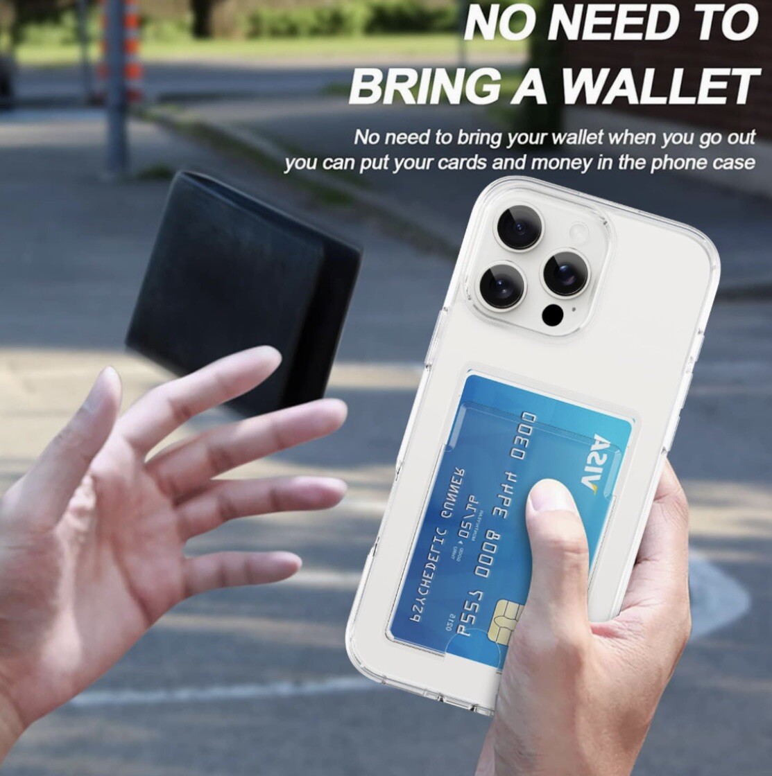 Transparent Card Holder Mobile Phone Case for Apple Iphone16 Pro Max Transparent Card Slot Mobile Phone Case Flip Cover 16 Plus Mobile Phone Protective Case Color: Clear Brand New Sealed