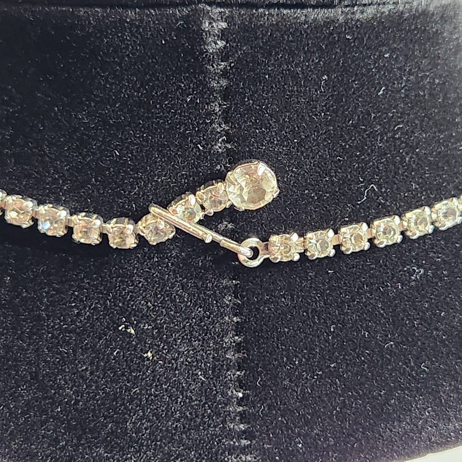 Good pre-owned condition Features- Style: Clear Drop Rhinestone Necklace Silver Tone 15 Inch Small Dainty Classic Bridal Flaws: No obvious flaws We are happy to answer any questions Color: silver clear Measurements: Length: 15" Smoke free per friendly home.. This Clear Drop Rhinestone Necklace is a classic and elegant piece perfect for weddings, engagements, anniversaries, and more special occasions. The necklace features a silver tone metal base with a Y-drop style that exudes beauty and love. The main stone, a round white/colorless rhinestone, is set in a prong setting and falls at a 15-inch length, making it a dainty and adjustable accessory for any outfit. The necklace is a timeless statement piece that captures the essence of fairytale and fantasy themes in jewelry design.