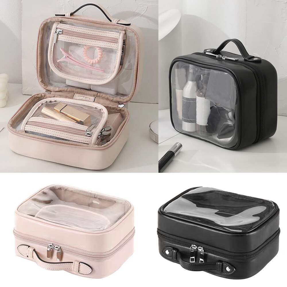 Cosmetic Pouch Bath Toiletry Bag Organizer Case Large Capacity Storage Zipper Specification: Item Type: Cosmetic Cases Style: Casual Closure Type: zipper Shape: Box Model Number: Cosmetic Bag Item Weight: 350 g Material: PU+TPU Lining: polyester Color: as shown Size: 21x15x11cm/8.26*5.9*4.33in Packag Include: 1PC Cosmetic Bag Note: Due to the different monitor and light effect, the actual color of the item might be slightly different from the color showed on the pictures. Thank you! Please allow 1-2cm measuring deviation due to manual measurement. Features: 1. Large capacity: This makeup bag has enough space to store all travel toiletries, full size makeup brushes, or regular size cosmetics and bottles. Large opening for easy access to essential items. 2. Double layer makeup bag: The transparent travel bag has two small zipper pockets, making it an excellent choice to separate cosmetics from toiletries. 3. Transparent: PVC transparent material allows you to see the items inside the makeup bag, making it easy to use and quick to find. 4. Portable and waterproof: The soft fabric and lightweight design make it very portable, reducing the burden of luggage and making travel easier. A waterproof surface can protect your device from splashes and is easy to wipe 5. Excellent Gift: Perfect for daily use or travel. This is a makeup bag suitable for your love. The perfect gift for girls, ladies, or family on Christmas, Thanksgiving, or Valentine's Day.